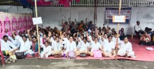 शासकीय सेवेत नियमित समायोजन करावे, या प्रमुख मागणीसह अन्य मागण्यांसाठी राष्ट्रीय आरोग्य अभियान अधिकारी/कर्मचारी एकत्रीकरण समिती महाराष्ट्रच्या वतीने आजपासून बेमुदत संप पुकारण्यात आला आहे. संपात सामिल अधिकारी, कर्मचार्‍यांनी धुळे शहरातील क्युमाईन क्लब येथे धरणे आंदोलन सुरु केले. एकत्र येत सर्वांनी घोषणाबाजी करीत निदर्शेने केली.
