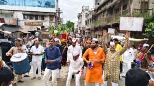 महात्मा गांधी पुतळ्याजवळून जाणाऱ्या मिरवणुकांवर खान्देश तेली समाज मंडळातर्फे यंदाही पुष्पवृष्टी करण्यात आली. पुष्पवृष्टी करण्याचे यंदाचे हे चौथे वर्षे होते.